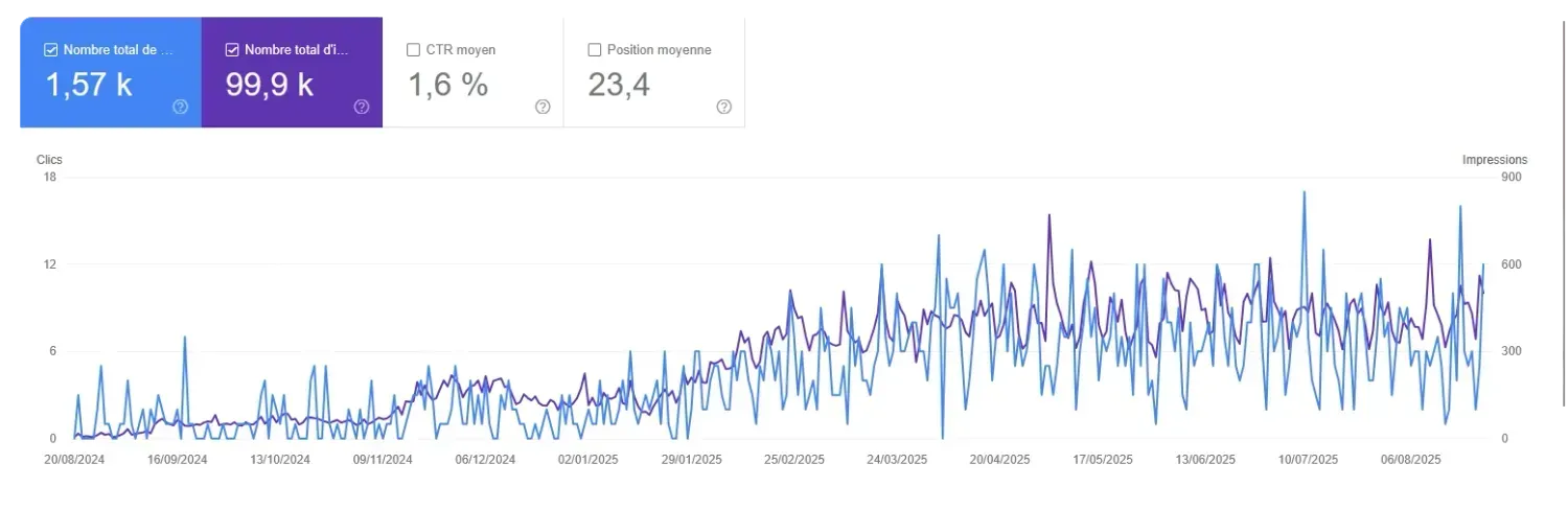 Données réelles extraites de Google Search Console